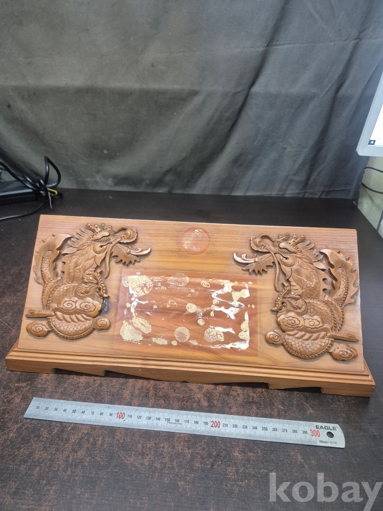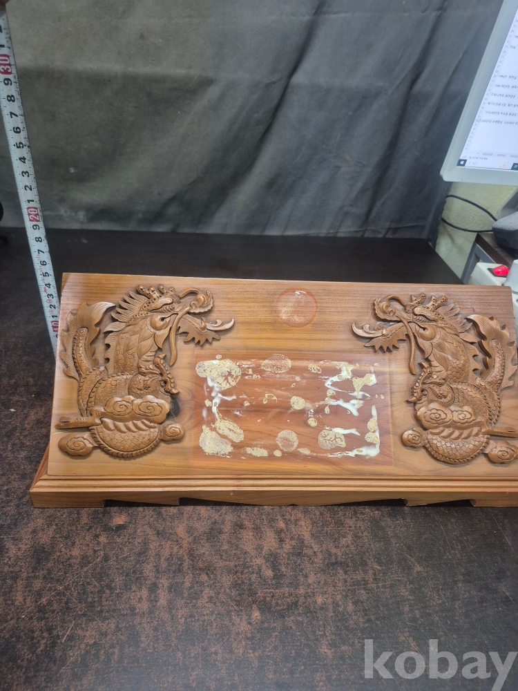 원목에 양쪽에 봉화을 깍아 만든 명패 명패는 떨어져 있어요 42*10*15