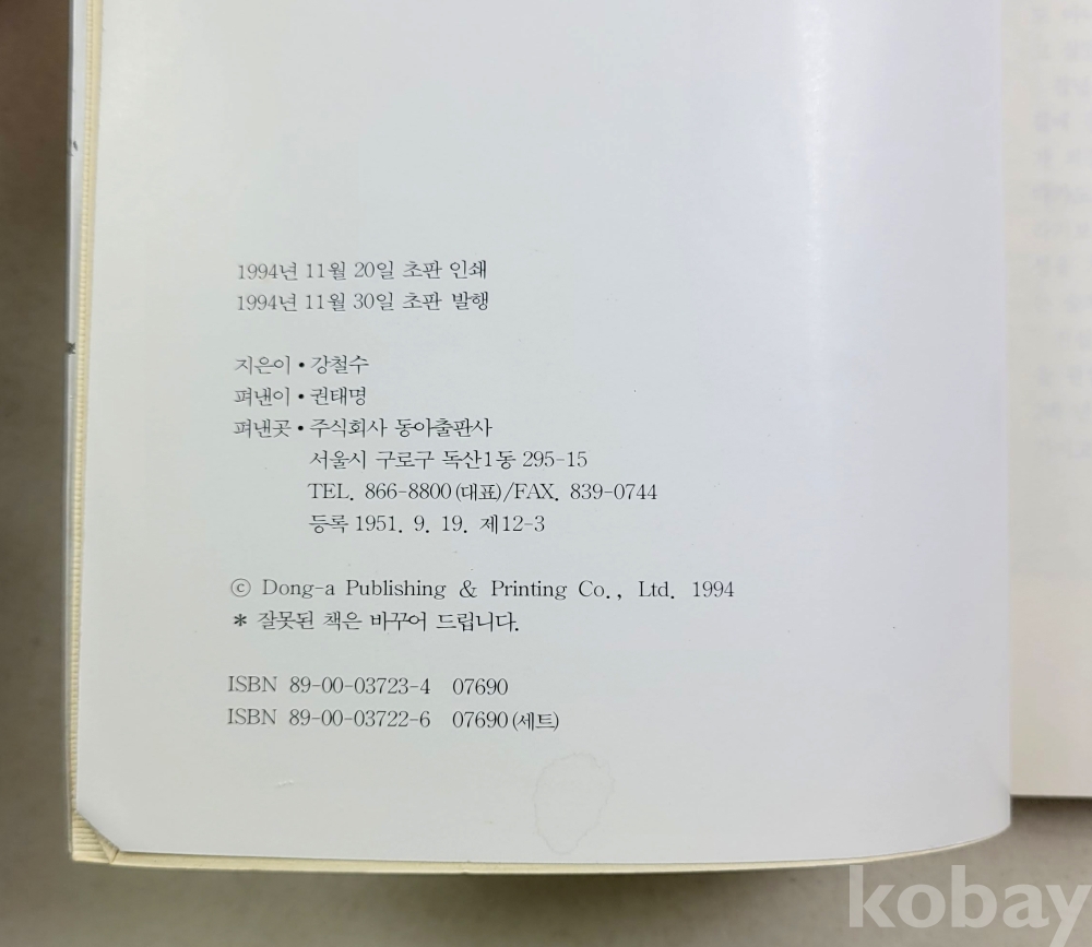 상 태 | 훼손 및 오염 정도(상태를 강,중,약,양호로 표시함) 사진 참고 부탁드립니다. / 표지 : (1~3)약 / 책등 : (1~3)약 / 내지 : (1,2)양호 (3)약 - 미미 |