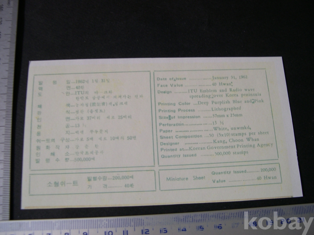 킬라복사 안내카드 #127 : 국제전기통신연합 가입 10주년 기념 (1962. 1. 31) 킬라복사임