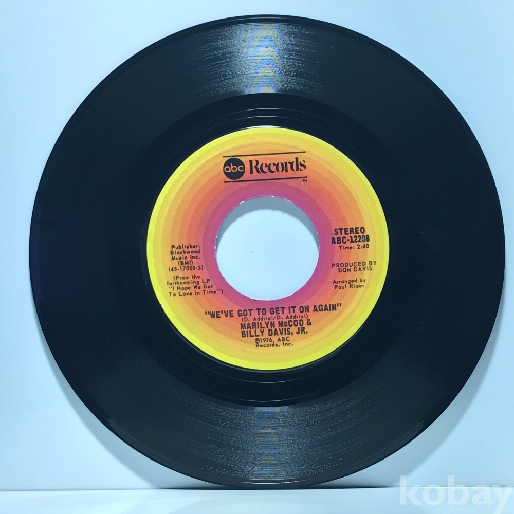7인치 LP 83,640-117 WE'VE GOT TO GET IT ON AGAIN -MARILYN McCOO & BILLY DAVIS, JR. . 자켓 無 알판 EX 76년 수입반
