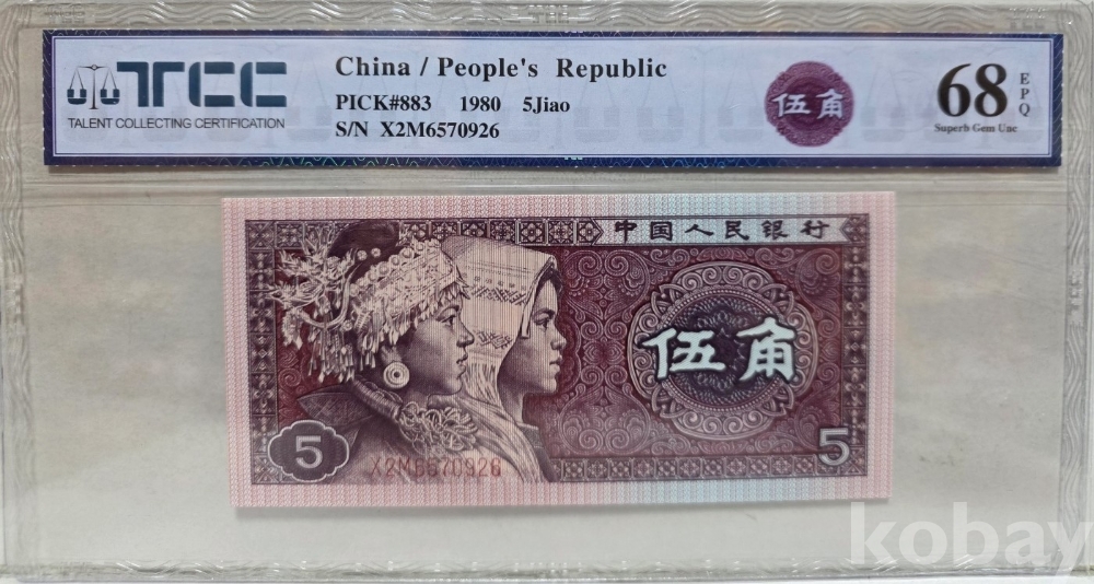 -1980년 중국 인민은행 발행 5각 지폐 TCC68 고등급 입니다.