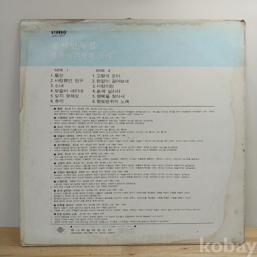 | 자켓상태 | EX : 약간의 마모, 모서리 찢김 존재 | 음반상태 | NM : 개봉했으나 미사용급, 스크래치 없음 | 발매정보 | 초반 | 가사지여부 | 무 |