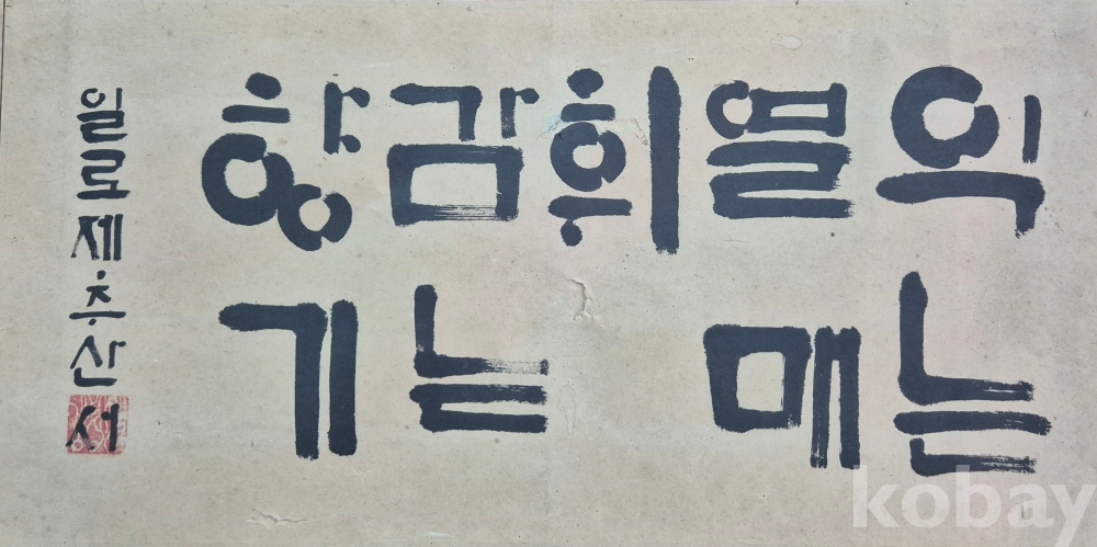 제법 오래된 범상치 않은 한글 서예 작품'이오니 작품 이미지상 수결 및 낙관'등 두루