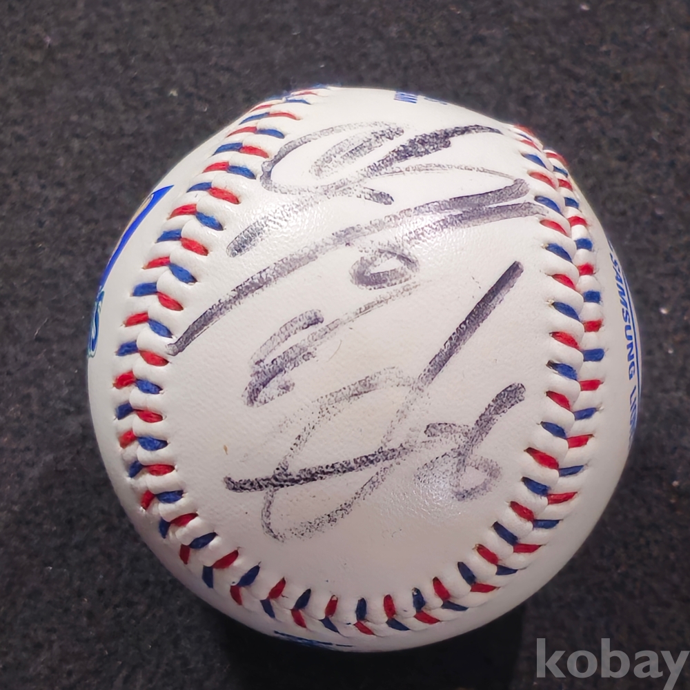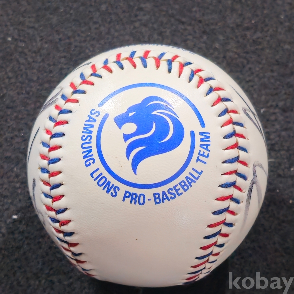(((프로야구/야구공/싸인볼))) 2001년도 삼성라이온즈 김응용감독/이승엽선수 친필싸인 구구형 역삼각 청사자 로고볼 (소형구)