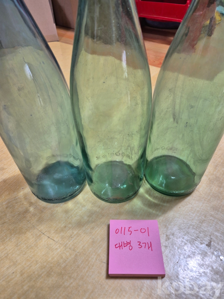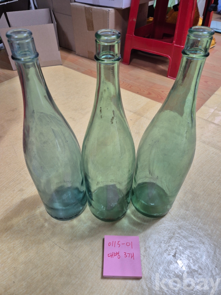 0115-01 소주병 대병 빈병 3개 (근현대사 추억소품 전시용품 학교관련물품)