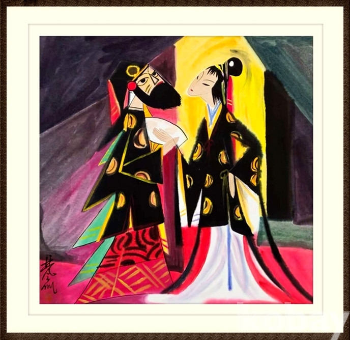 중국 근현대 서양화 정립자 임풍면(林風眠) 1980년대 추상인물 경극미인도
