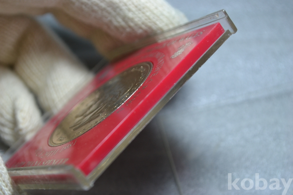 케이스안에 붉은색의 두꺼운 프라스틱 아크릴판에 주화가 들어가 있는 상태 입니다. (주화는 꽉 끼여있는 상태는 아닙니다. )
