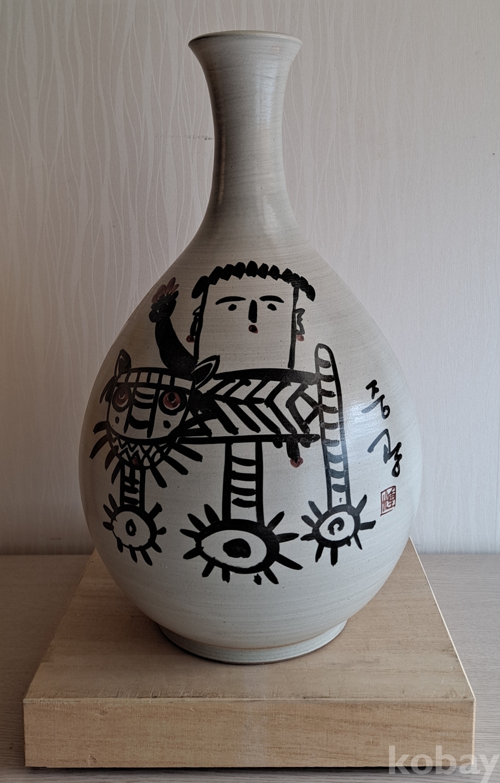 본 작품은 초대형 주병형 백자 도자기로 호랑이의 등에 탄 동자를 그린 매우 독특하면서도 흔치않은 귀한 작품입니다