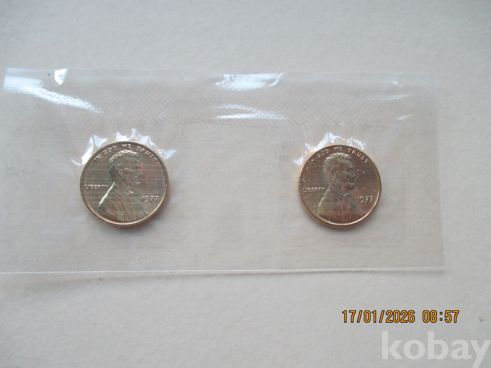 1977년1센트 진공특허품24k도금 좋음 빛반사 미사용 2개세트 묶음배송