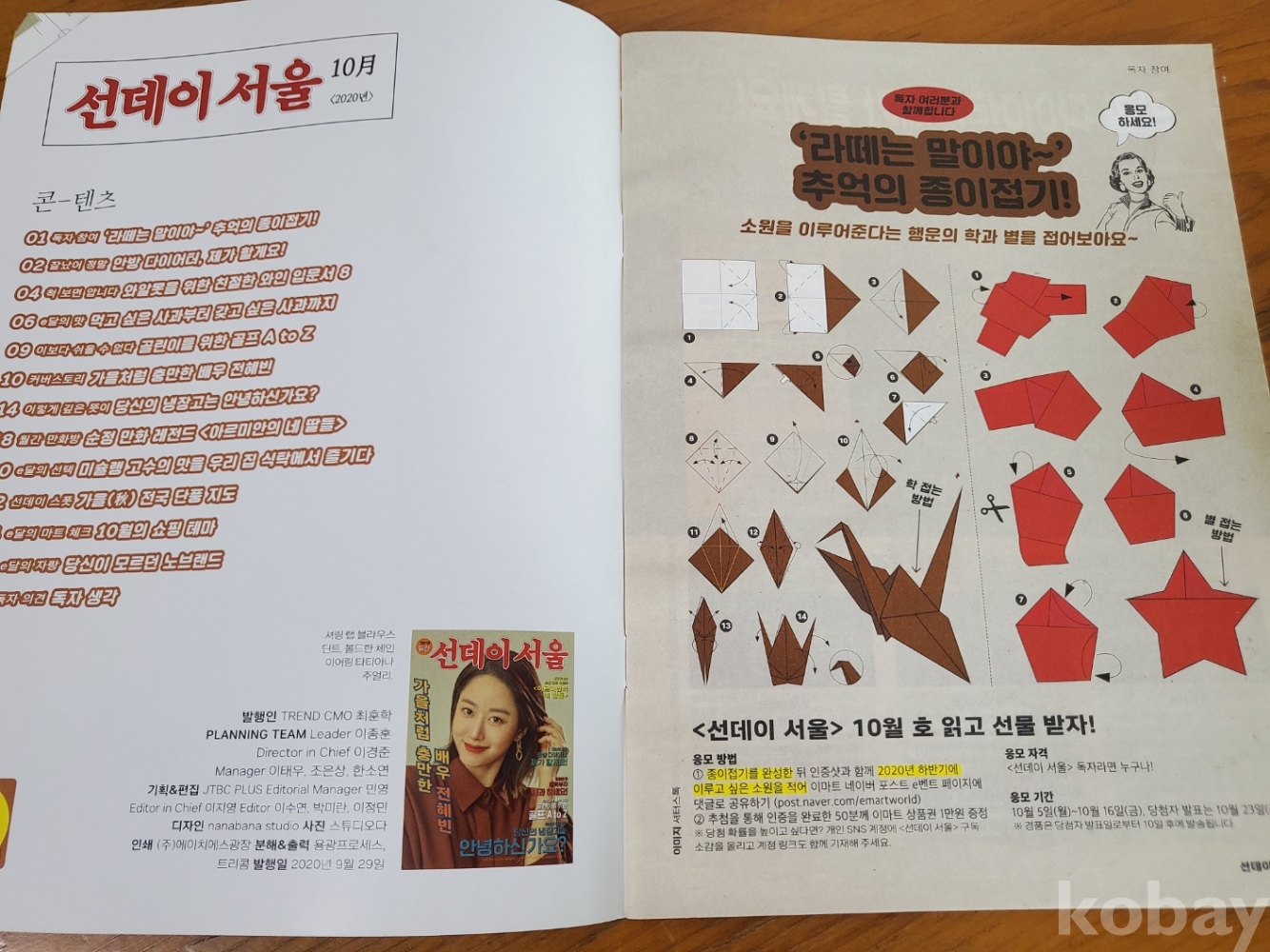 1. 선데이 서울 2020년 10월호, 이마트, 2020년, 28쪽, 월간, 비매품, 이마트 소식지, 표지 모델(배우 전혜빈), 상태 상, 사진 참조