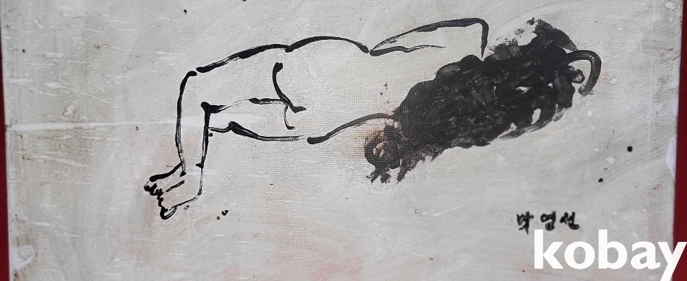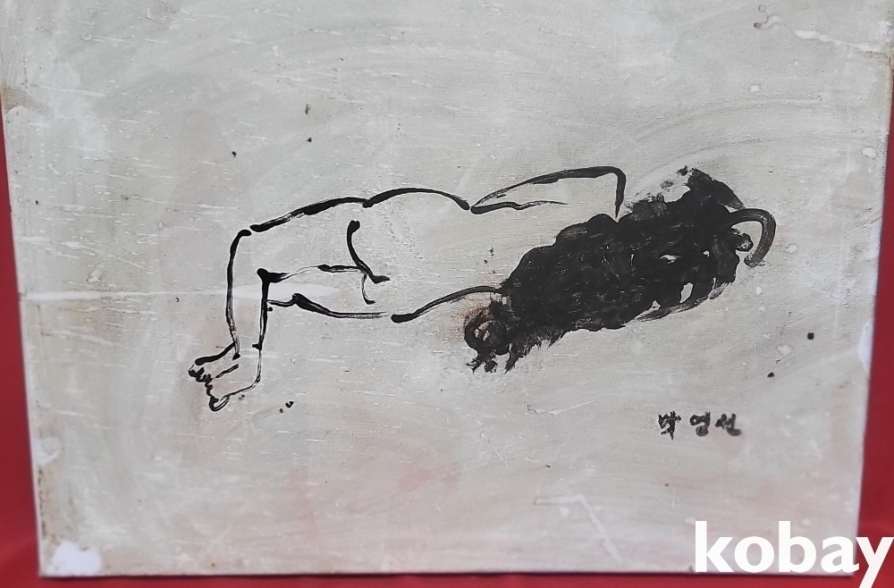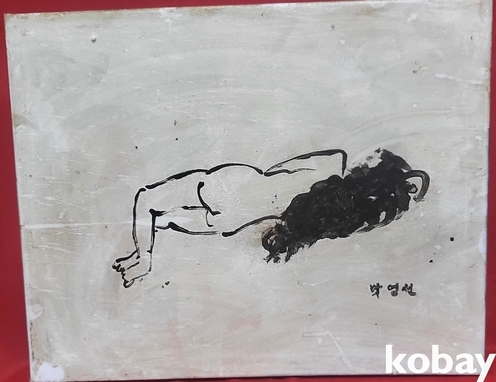 박영선 사인이 보이는 켄버스에 채색된 유화로 "나부" 그림입니다,