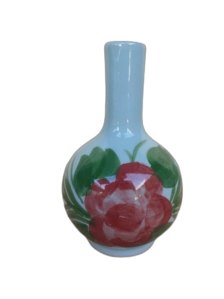 목단 그림이 있는 목긴 도자기 입니다.