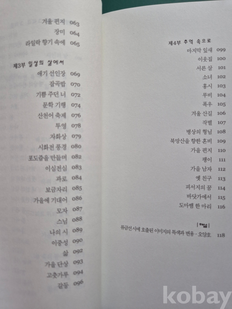 오양호 교수(문학평론가)의 작품 해설. 4부 88편 수록.