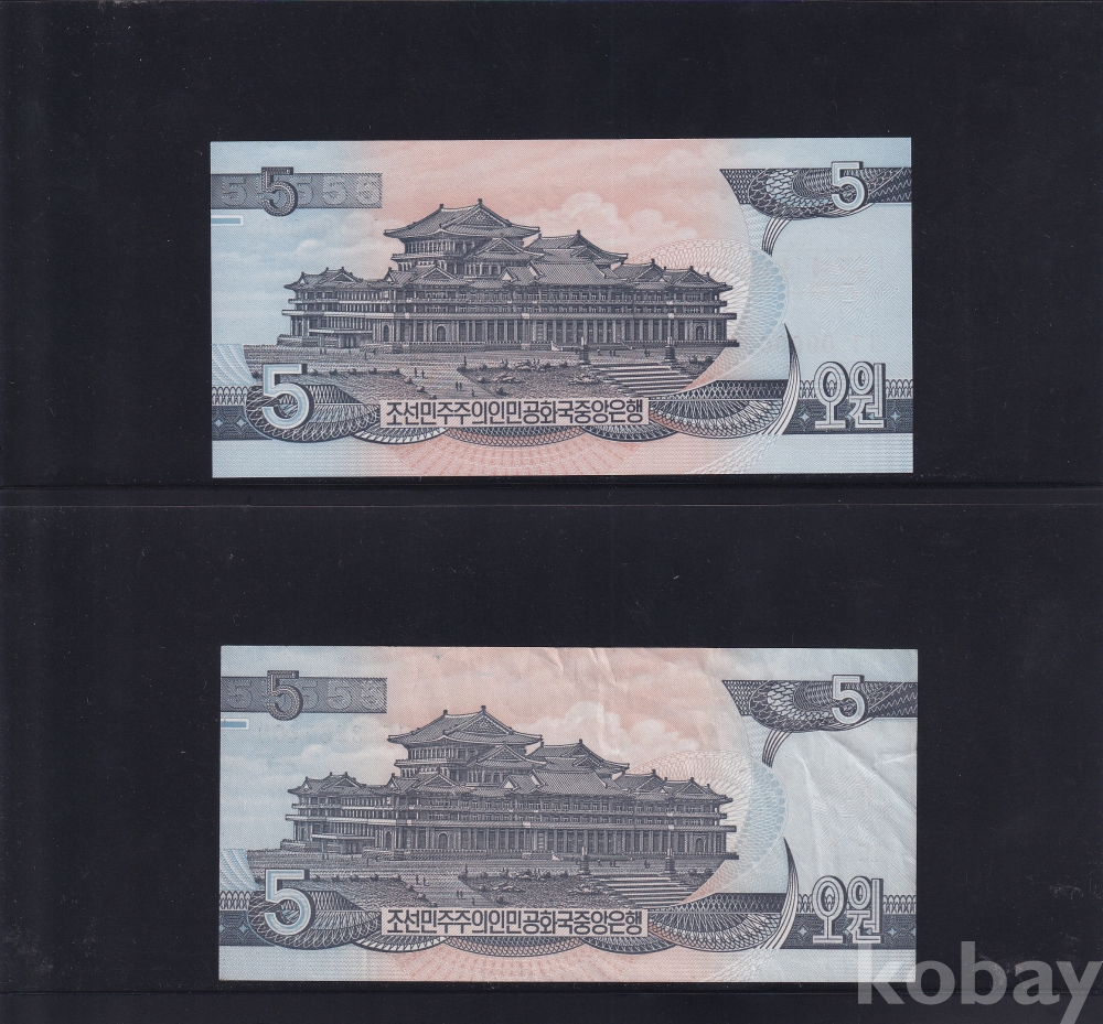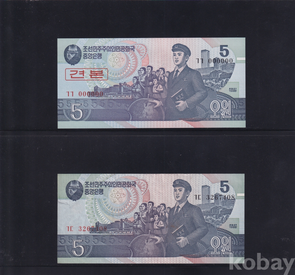 - 윗동네 1998년 오원 000 견본 / 오원 통용권 미사용 지폐 - 2장 일괄