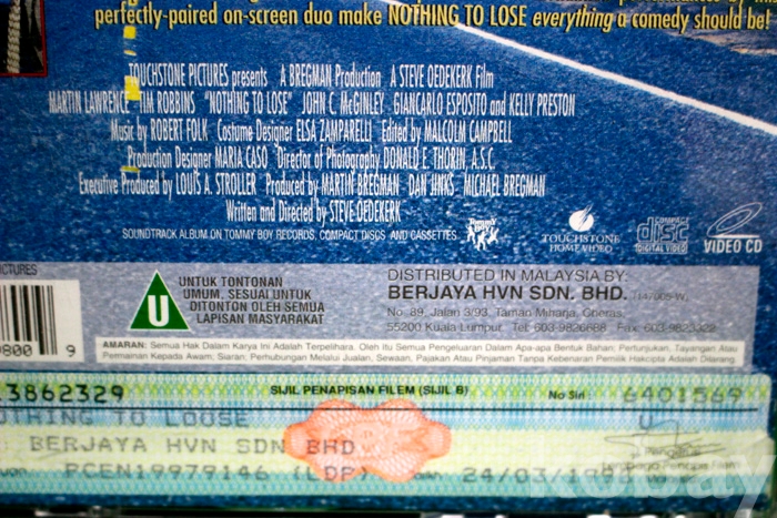 (말레이시아제작 VCD) 낫씽 투 루즈 - 팀 로빈스 / 마틴 로렌스..주연