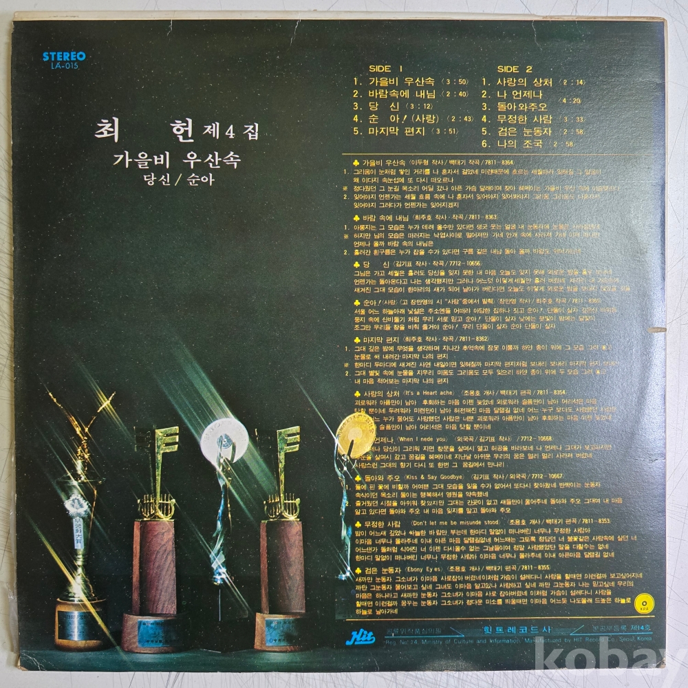 | 자켓상태 | VG : 주름, 접힘, 모서리 찢김 다수 | 음반상태 | VG : 생활 기스 다수, 가벼운 노이즈 존재 | 발매정보 | 초반 | 가사지여부 | 무 |