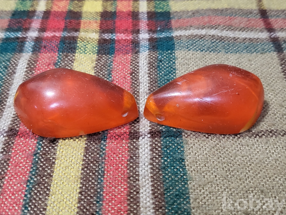 <투킴스> 오래된 전통 호박 마고자 단추 한쌍
