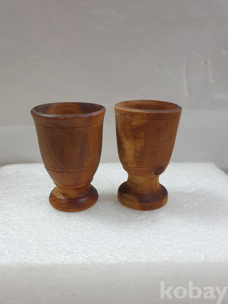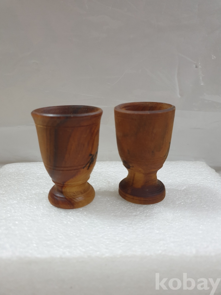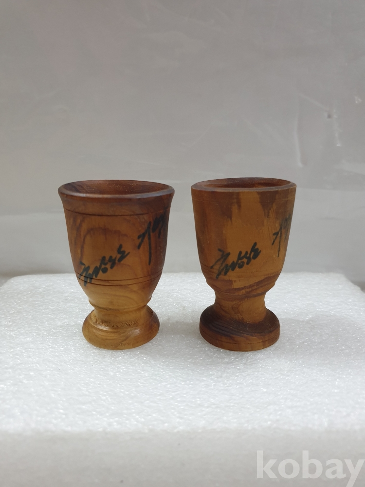 {천원경매}1-1916 글강산 기념 나무 잔 2개 (6cm)