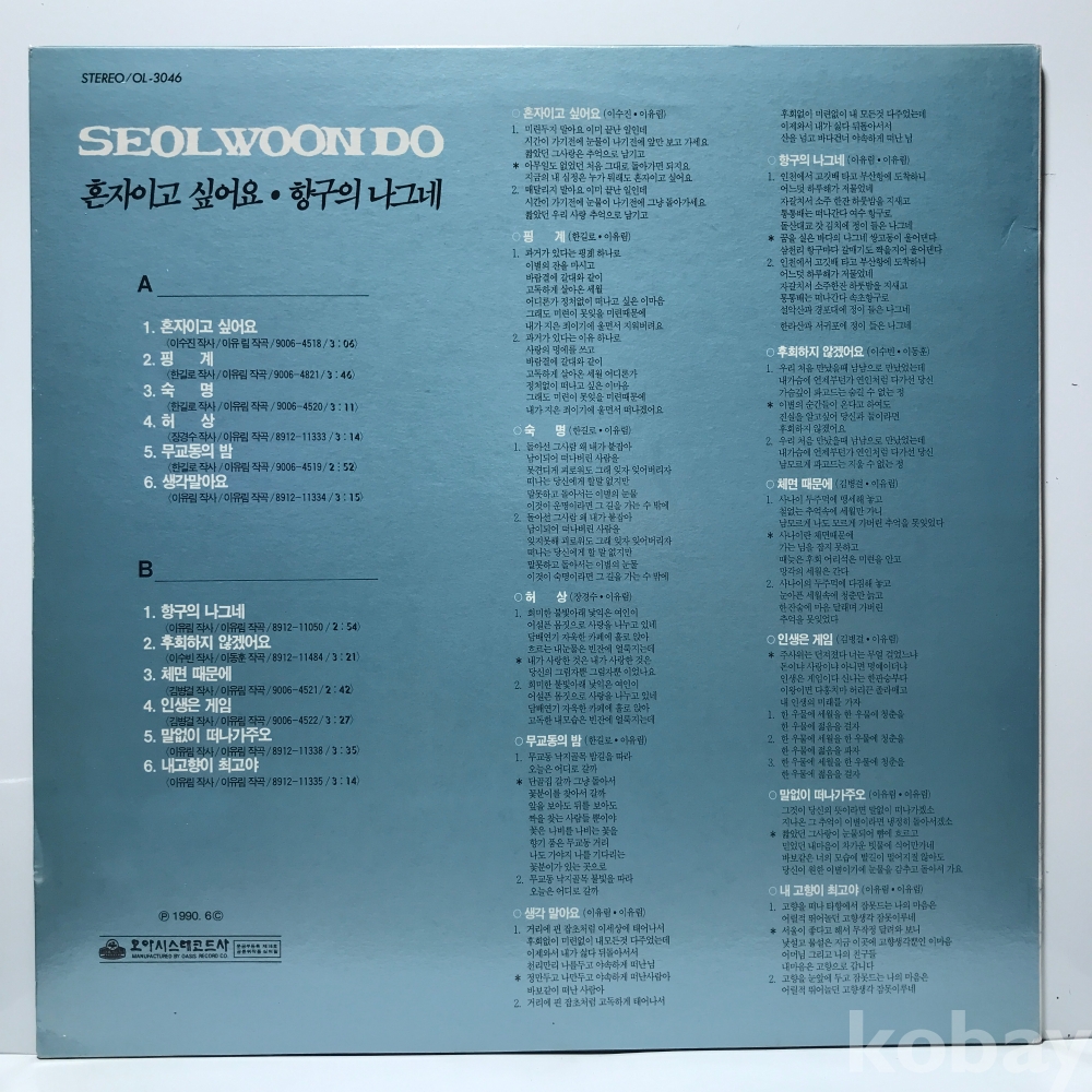 LP 22,447-46 설운도 - 혼자이고 싶어요/ 항구의 나그네 자켓 EX+ 알판 EX+ 90 년 국내반