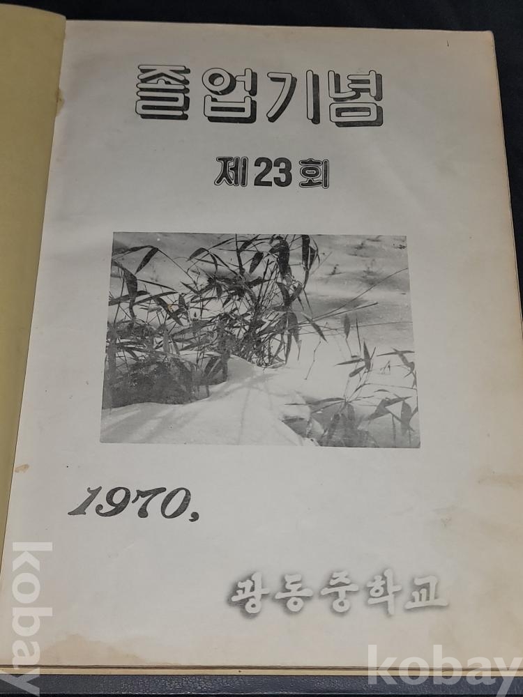 빈티지 세월 감이 느껴지는 1970년 광동중학교 졸업 앨범과 흑백 증명사진 2장 일괄입니다.