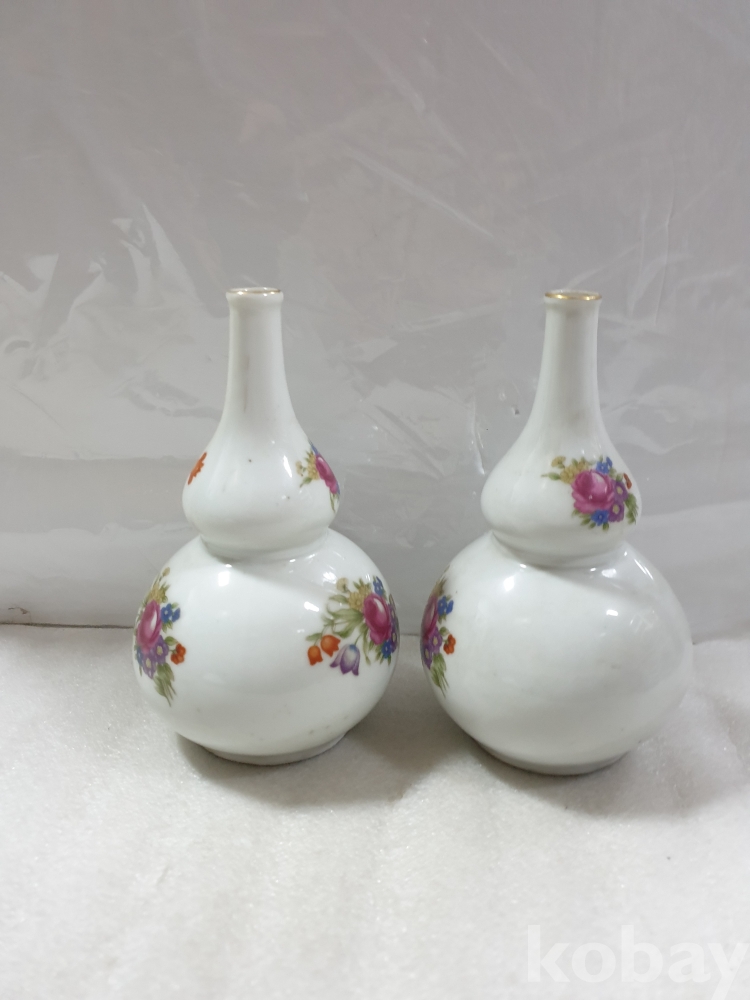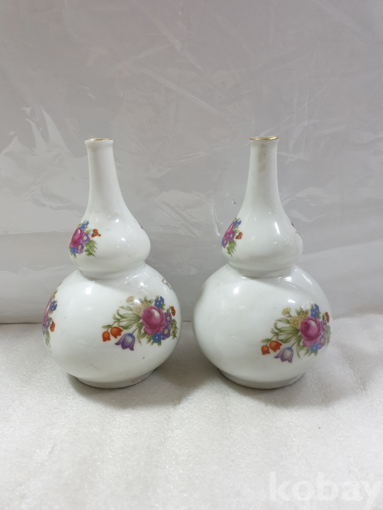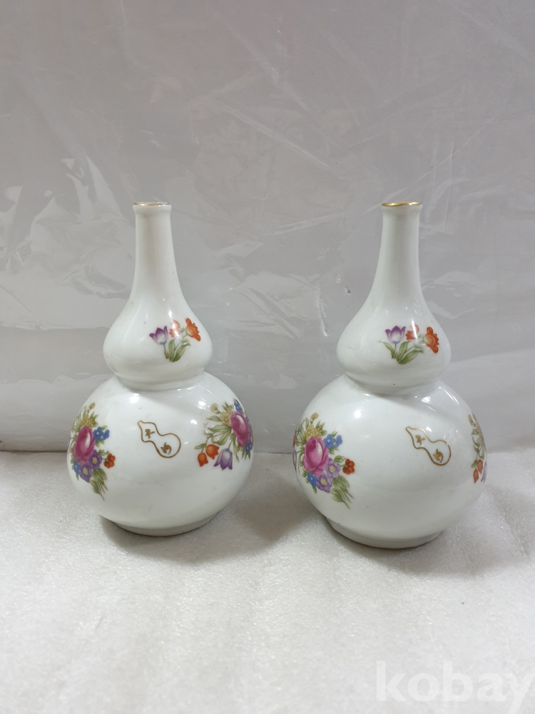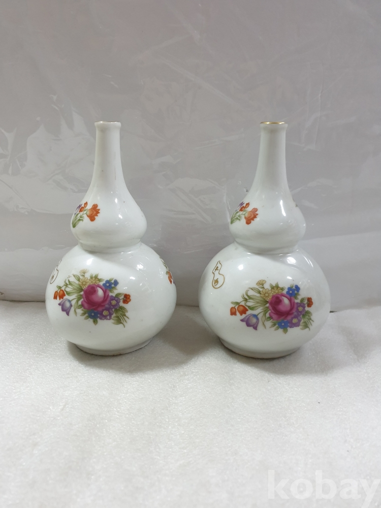 {천원경매}1-1202 칼라꽃 그림 도자기 한쌍(21cm) 묶음배송불가