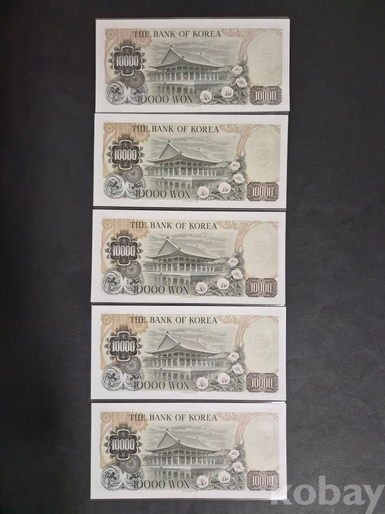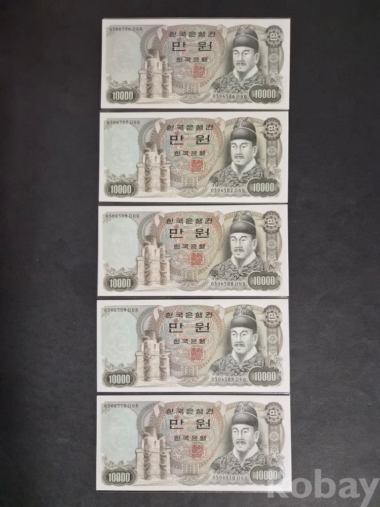 [근대사 화폐 기획전] 한국은행권 2차 만원 미사용 연번호 5매 일괄