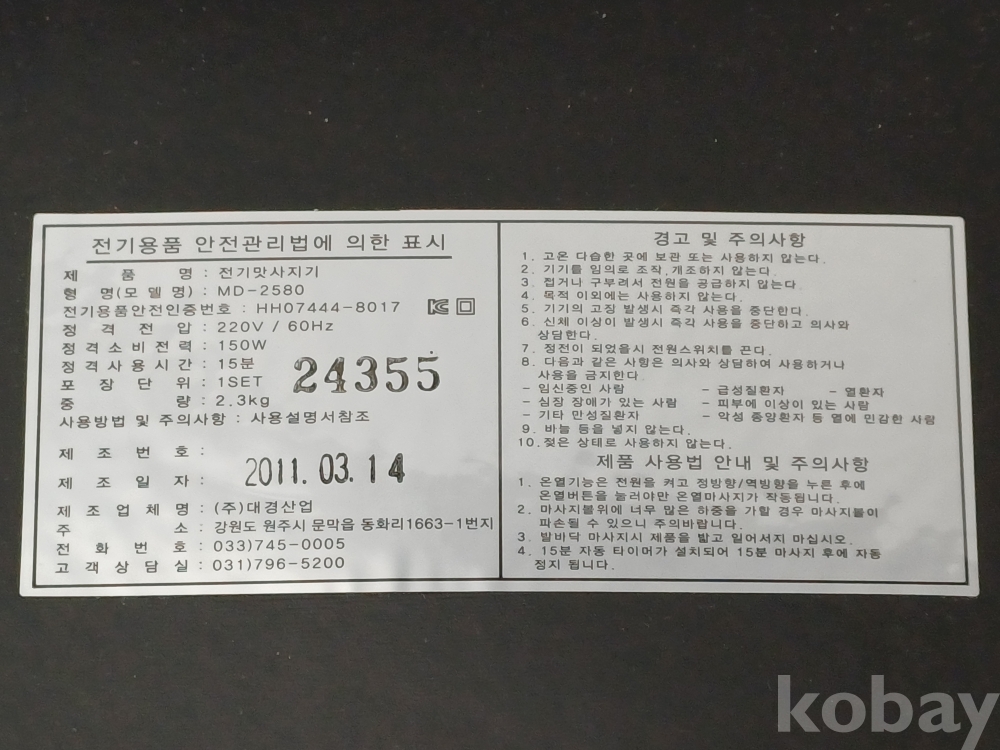 | 제조국 | 한국 | 연대 | 2000년~현재 |