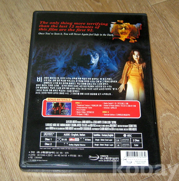 다리오 아르젠토 감독 / 공포영화 / 서스페리아 DVD (2disc)입니다.(1977년)