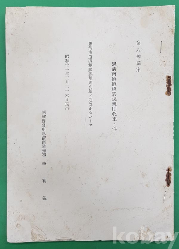 1936년 忠淸南道道稅賦課規則改正ノ件 (소화11년2월26일 제출) 朝鮮總督府忠淸南道知事 李範益, 총 32면