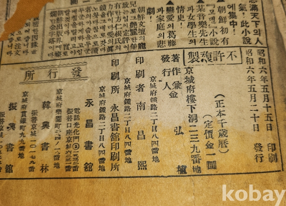 1931년 소하6년에 발간된 정본 천세력 입니다,