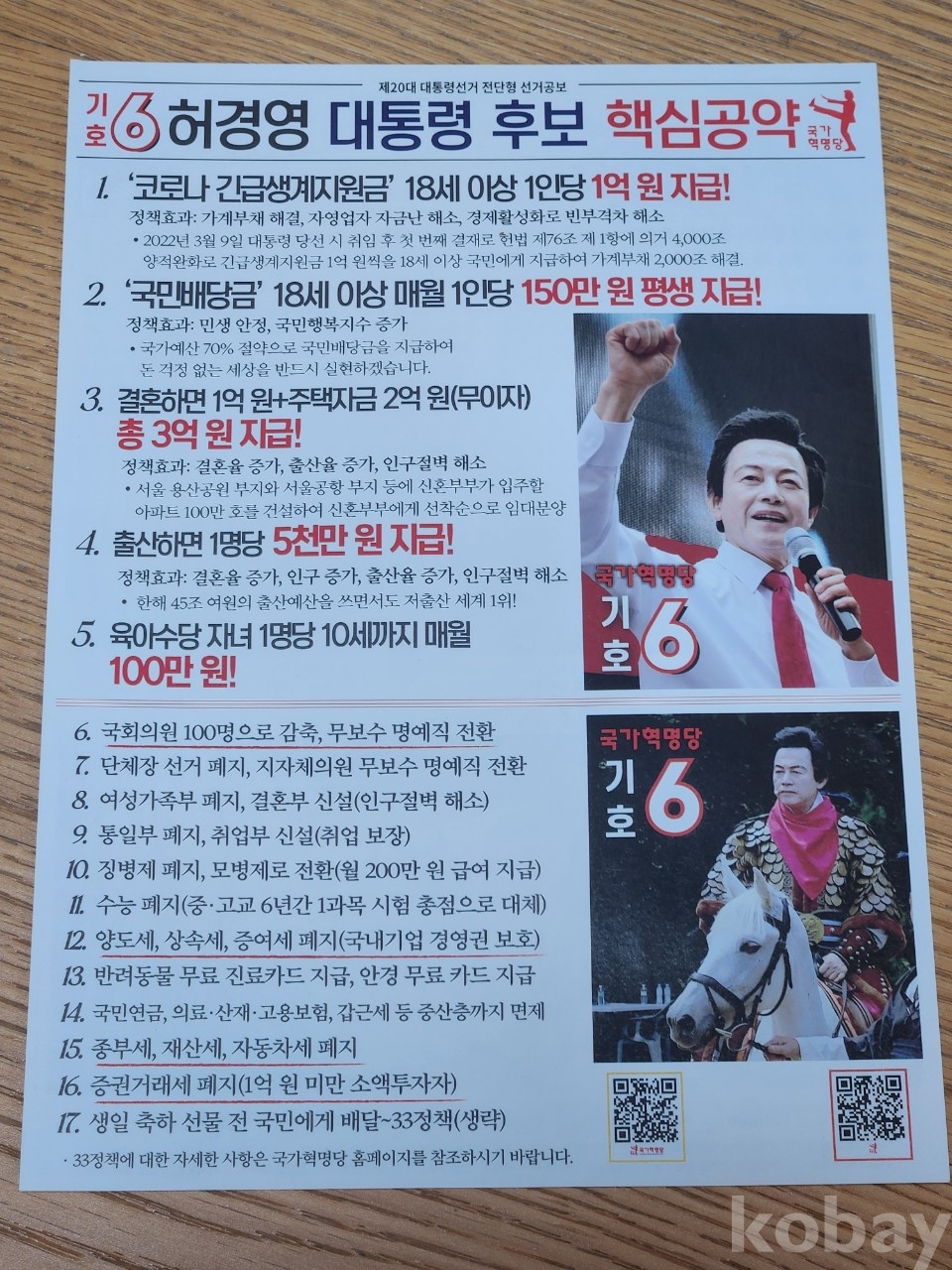 [선거자료] 허경영 관련 전단_기호 6 대통령 후보