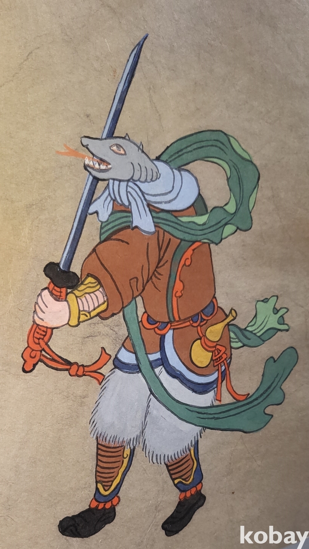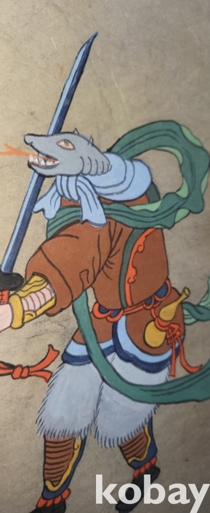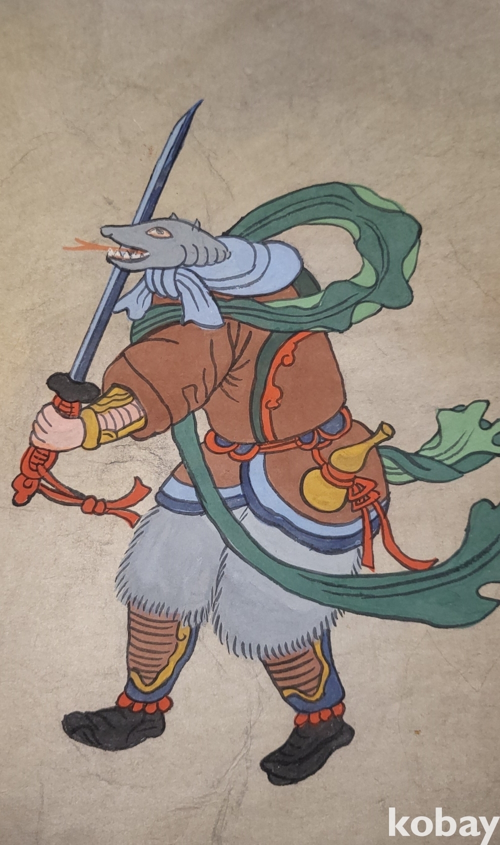 구한말 연대 갖춘 장지 바닥에 당채로 그려진 동물 형상 그림입니다,