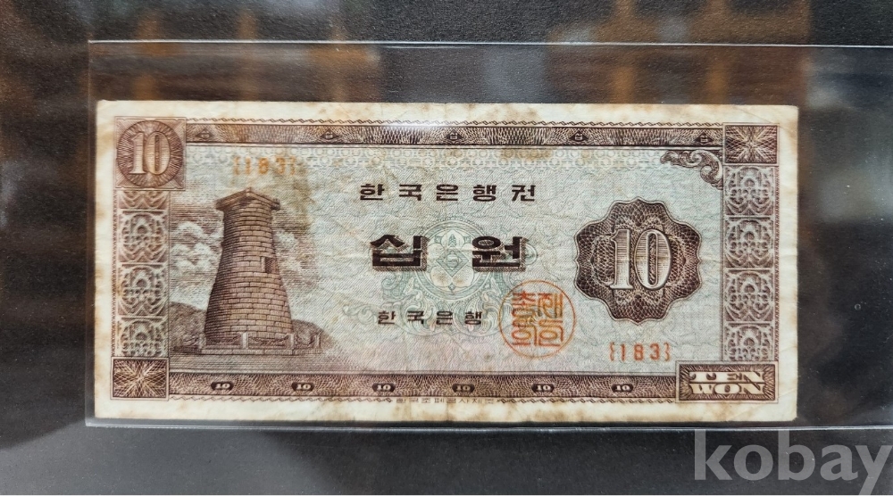 -대한민국 첨성대 십원 판번호 183번 사용제 지폐이고 완벽하지 않습니다. 부족하니 참조해주세요..