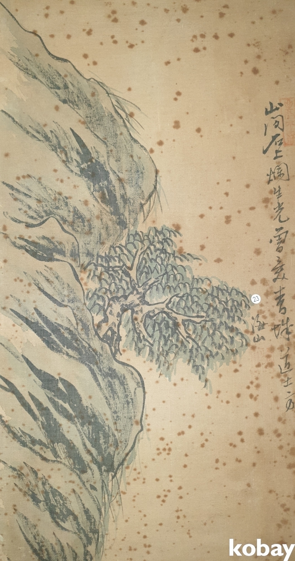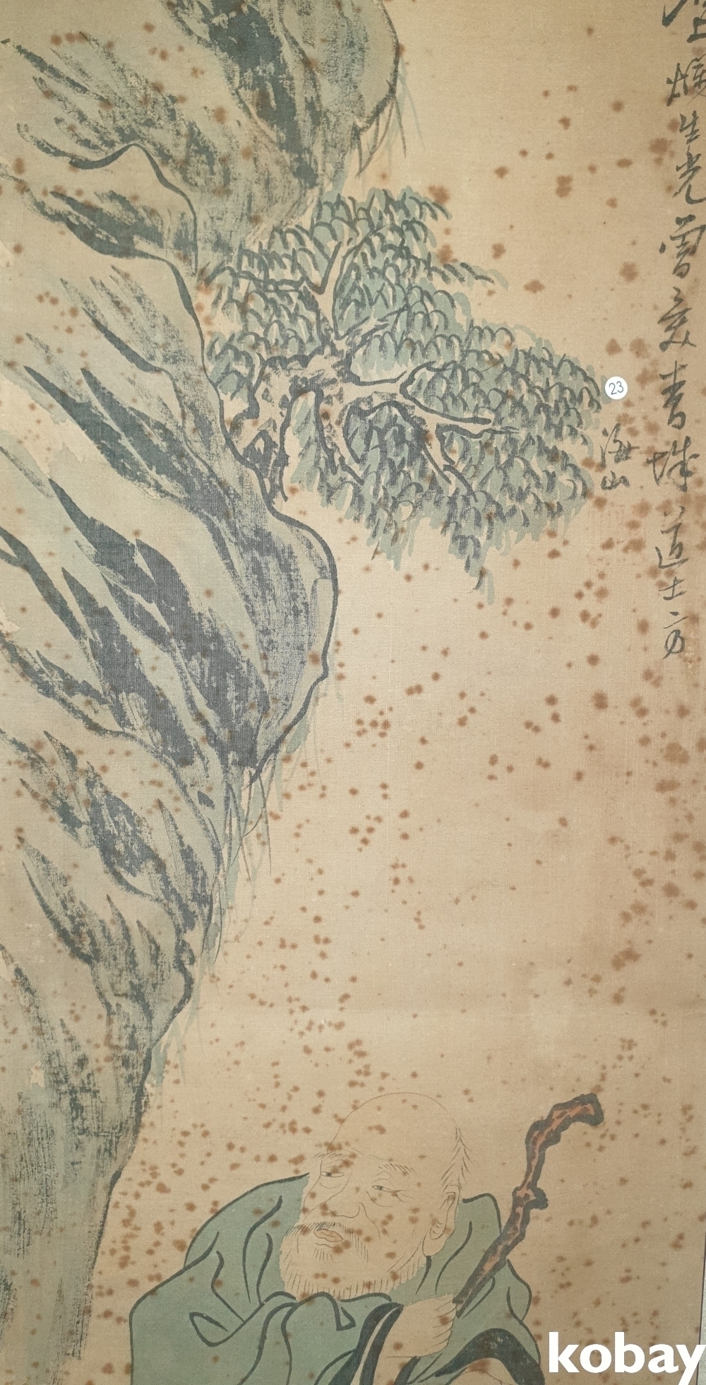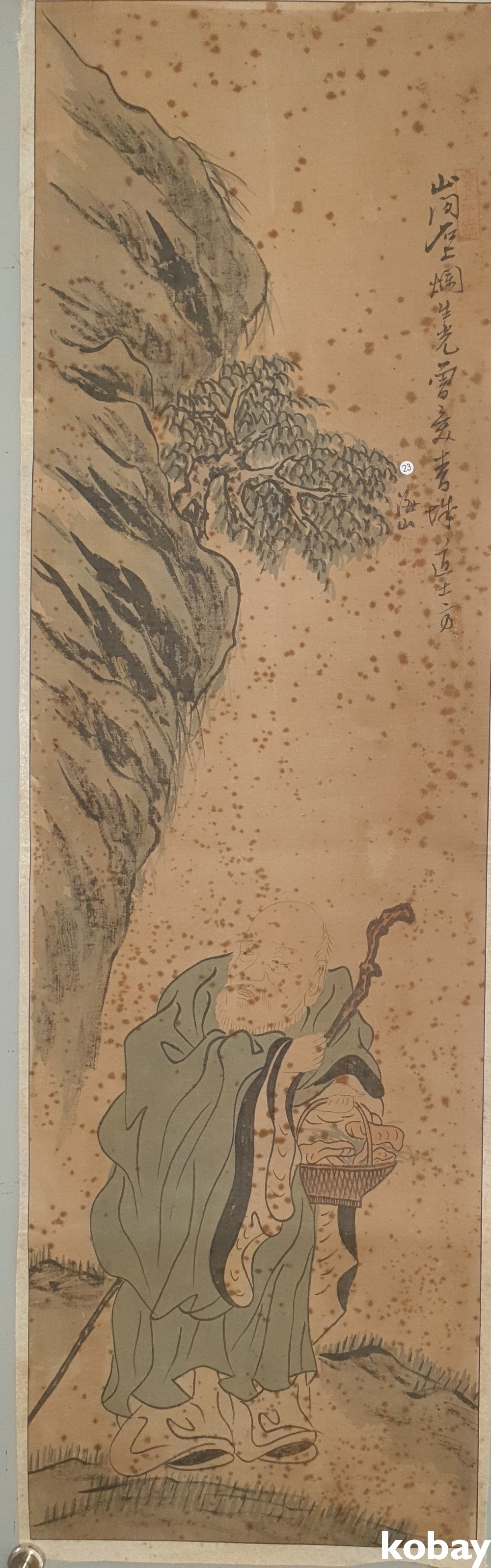 유명화가 해산 (海山) 수결과 낙관이 보이는 비단에 채색된 인물화입니다,
