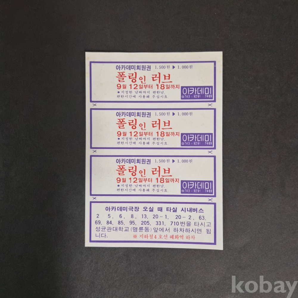 [희귀 근대사 자료] / (영화카드/리플렛/회원권/엽서/광고카드 등) / 폴링 인 러브