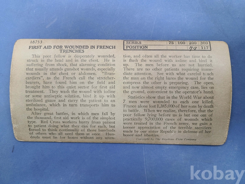 ▶제1차세계대전 스트레오뷰*FIRST AID FOR WOUNDED IN FRENCH TRENCHES