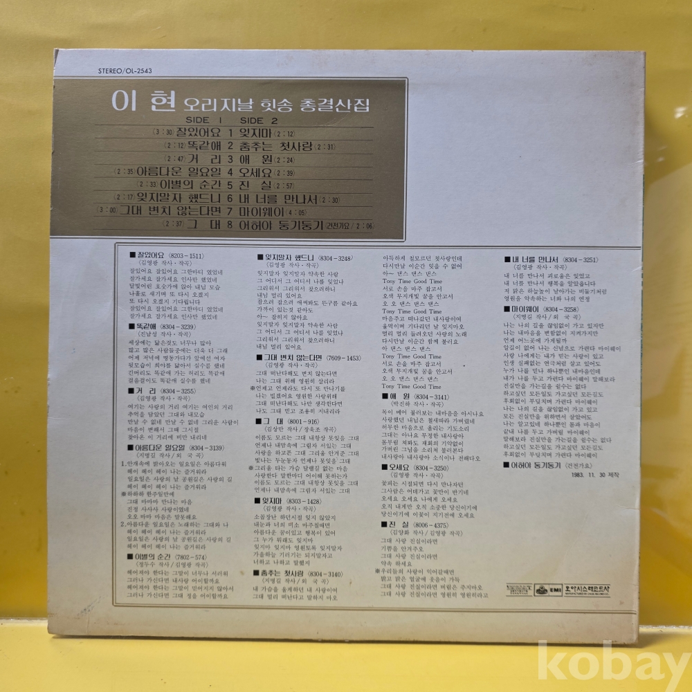 | 자켓상태 | EX : 약간의 마모, 모서리 찢김 존재 | 음반상태 | EX : 재생에 영향 없는 가벼운 기스 존재 | 발매정보 | 초반 | 가사지여부 | 무 |