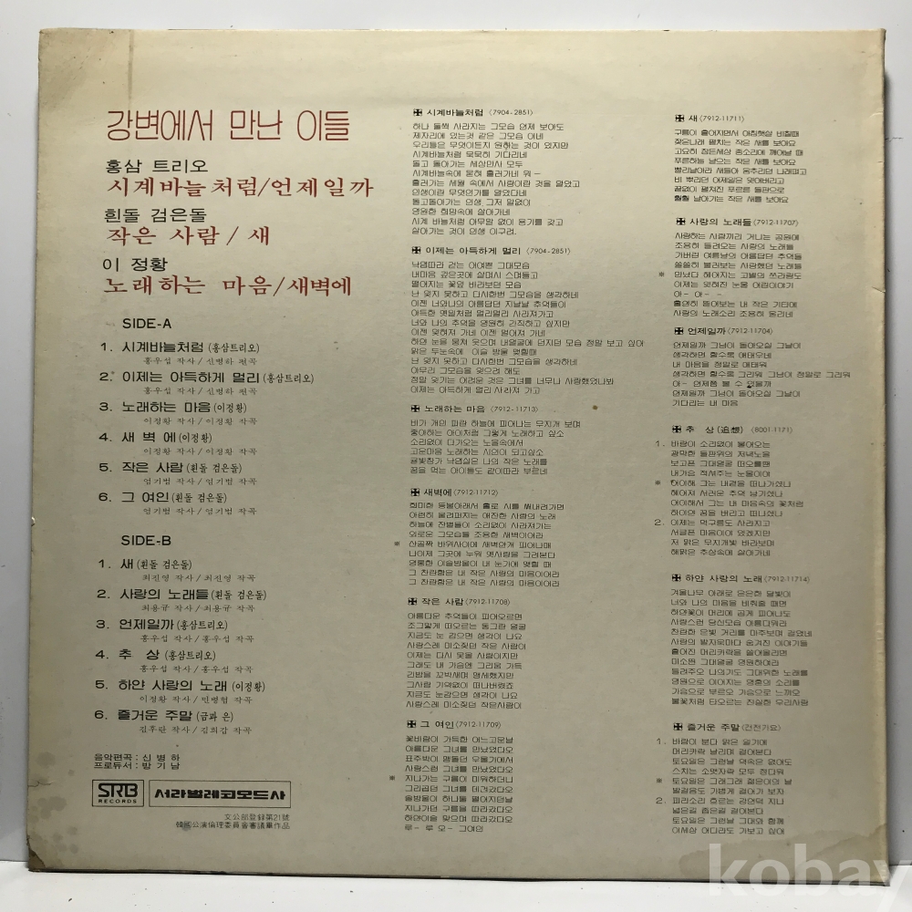 | 자켓상태 | EX : 약간의 마모, 모서리 찢김 존재 | 음반상태 | P : 깨지거나 뒤틀림, 구간 반복 발생 | 발매정보 | 알수없음 | 가사지여부 | 무 |