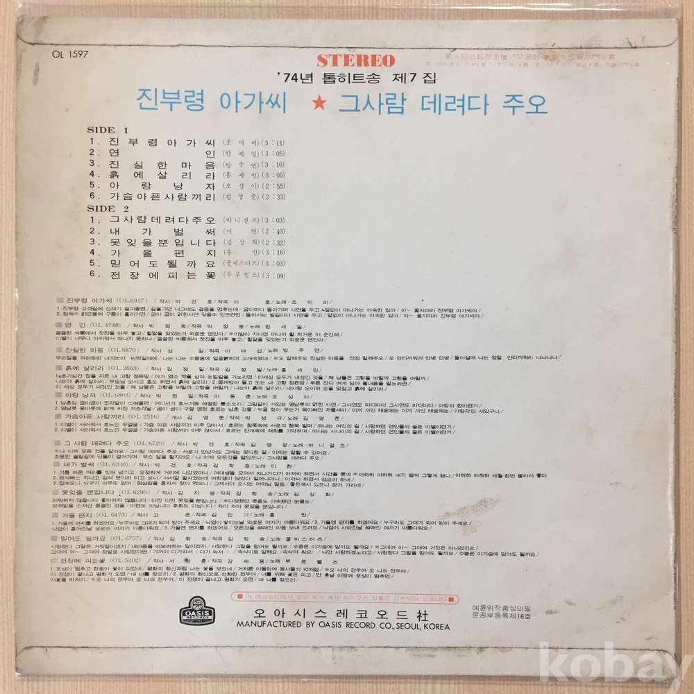 ⊙ 1974년 / 오아시스레코드 - OL 1597