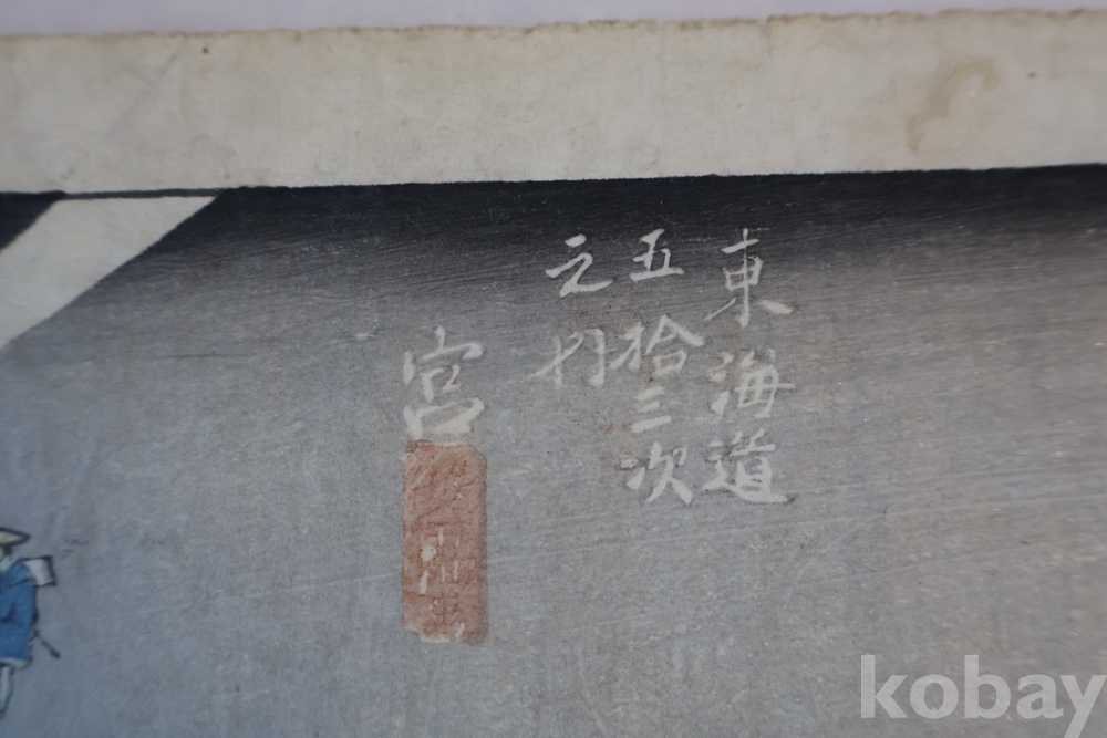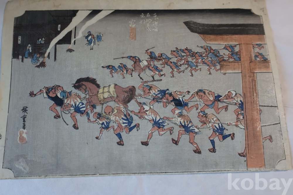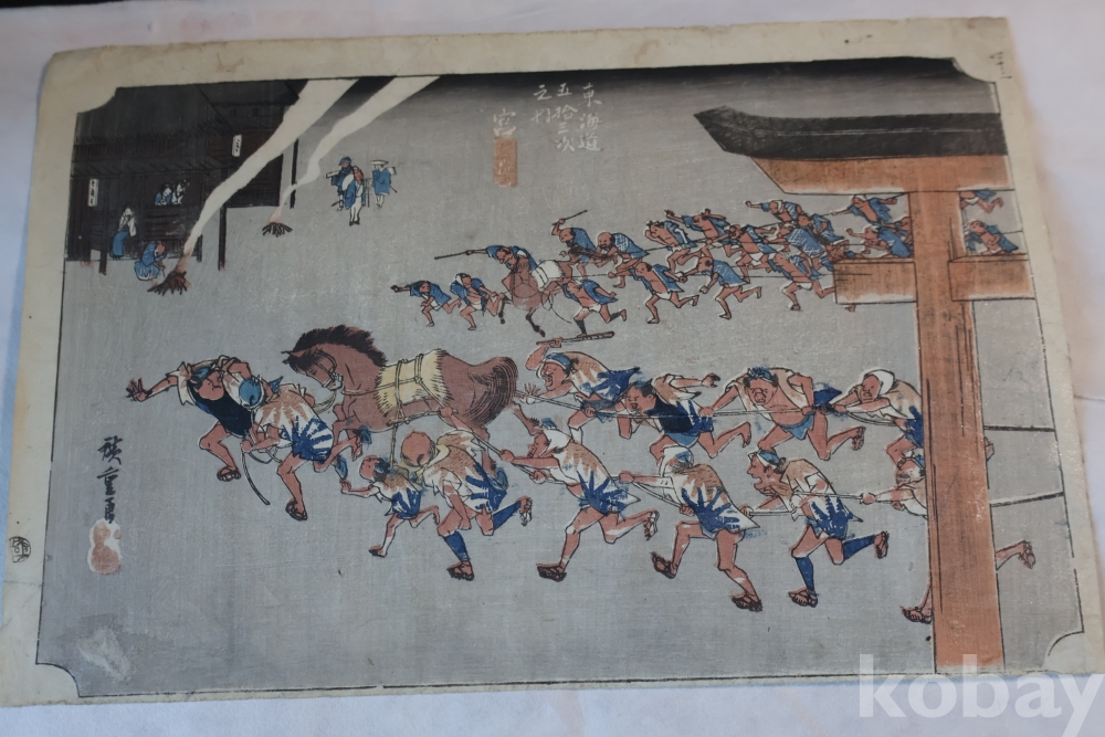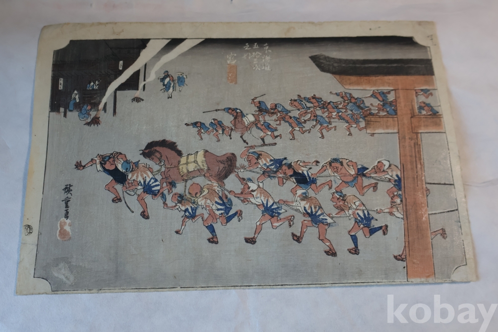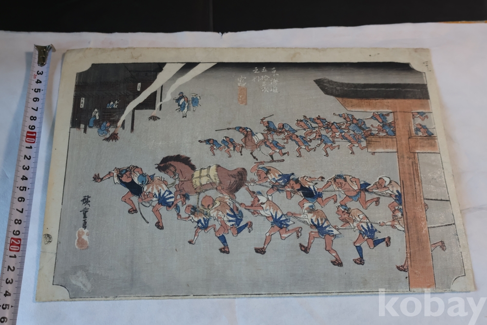 동해도 53차 중 미야 임니다 히로시게 작품 중 대표 작 동해도 53차 이며 극히 귀한 명화 임니다 배경 중에 은 마이카 흔적이 보이는 박물관급 목판화 원본 임니다 MUSEUM PIECE