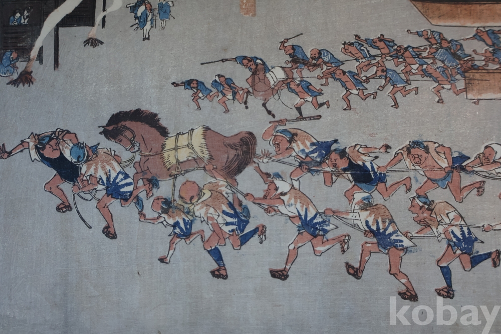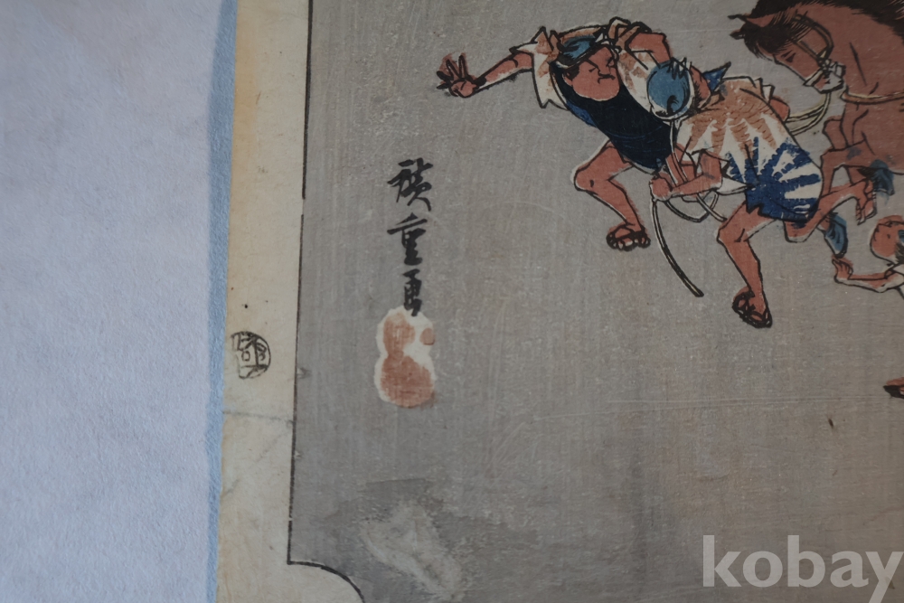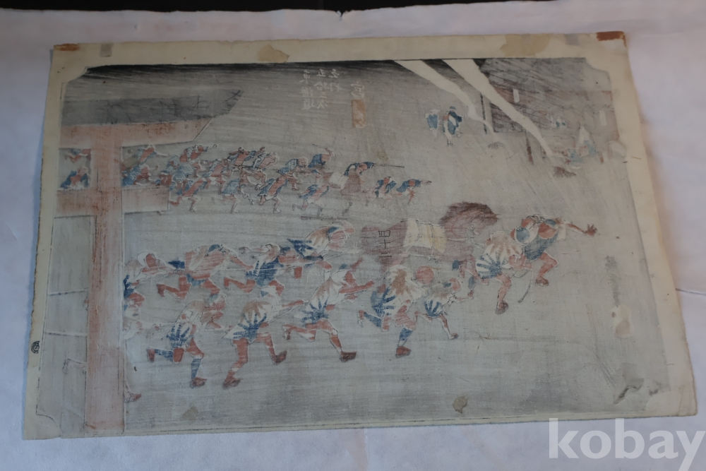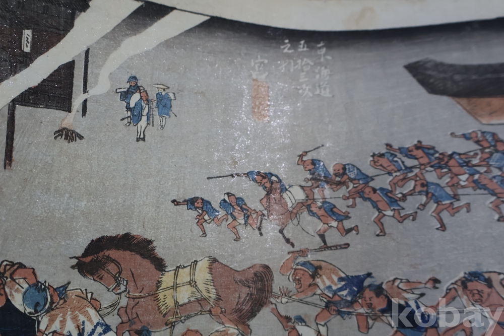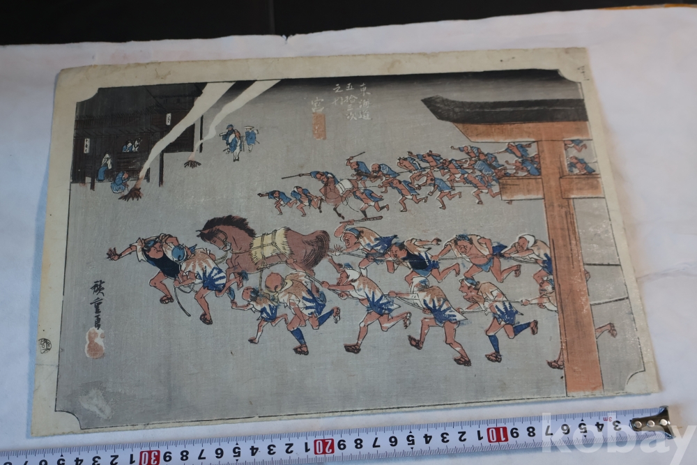 동해도 53차 중 미야 임니다 히로시게 작품 중 대표 작 동해도 53차 이며 극히 귀한 명화 임니다 배경 중에 은 마이카 흔적이 보이는 박물관급 목판화 원본 임니다 MUSEUM PIECE