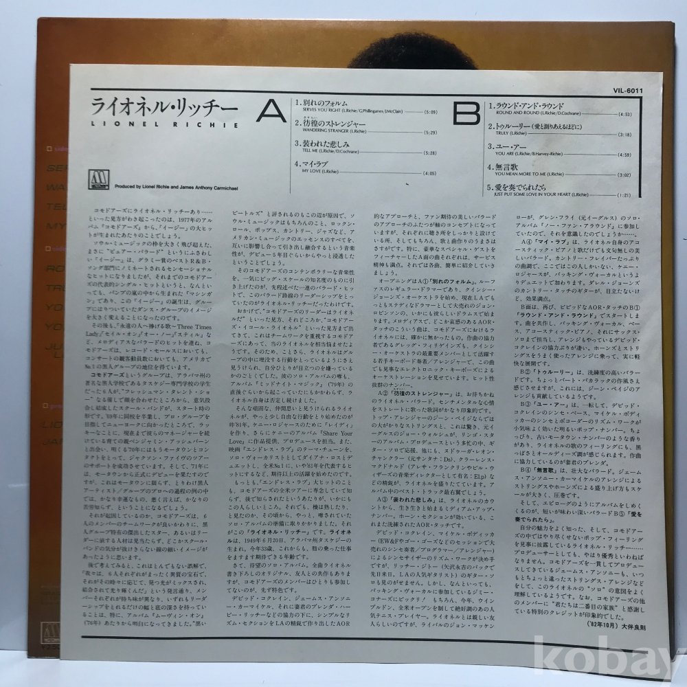 LP 83,800-34 Lionel Richie - LIONEL RICHIE . 자켓 EX+ 알판 EX+ 수입반