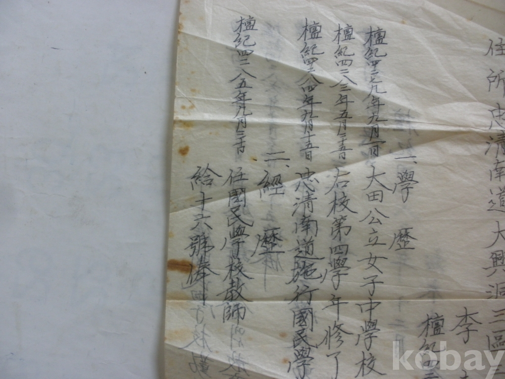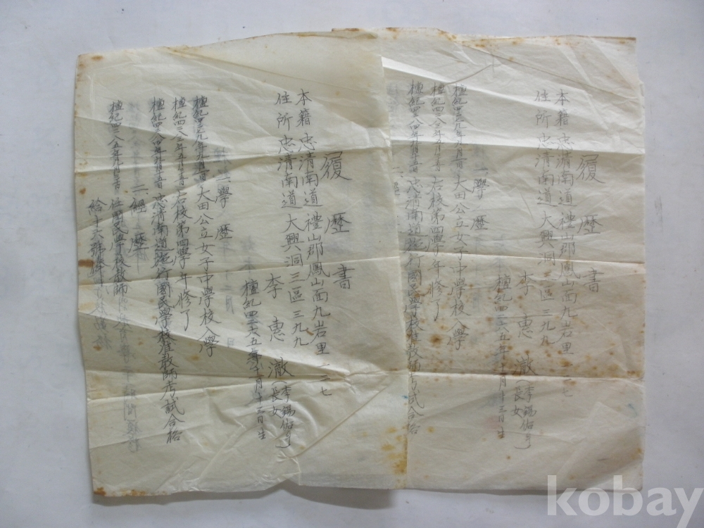 대전공립여자중학교 졸업, 국민학교 교사 등 - 이력서 (1954년)