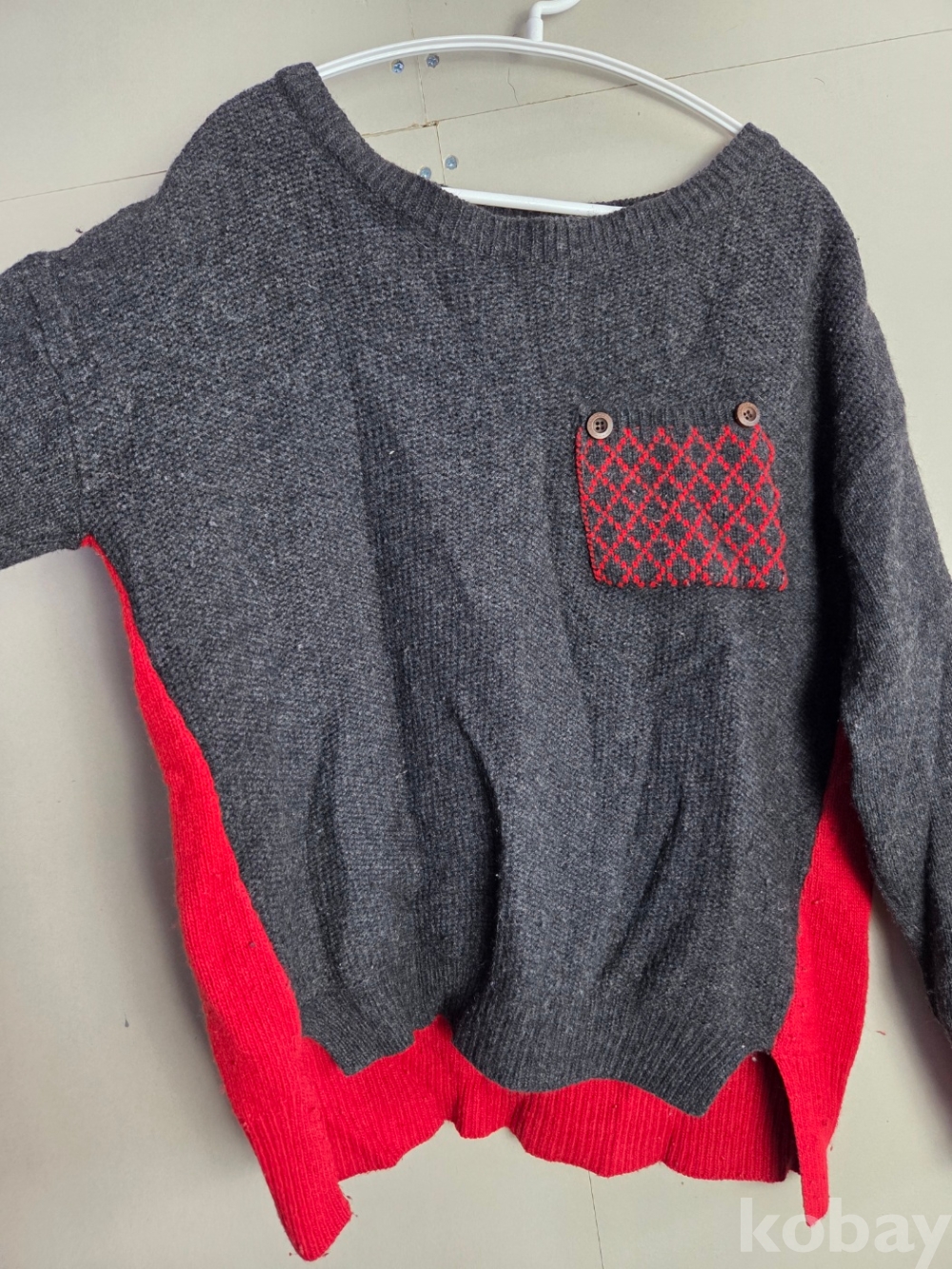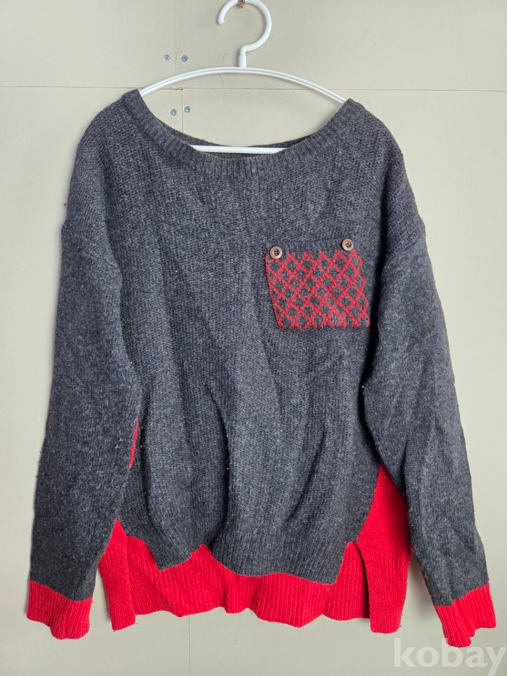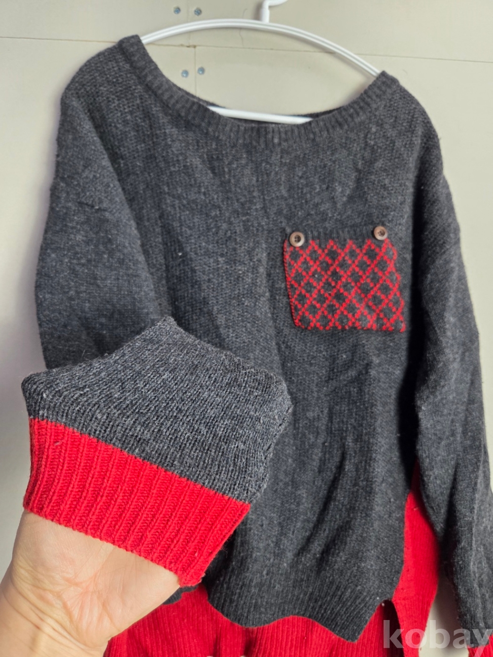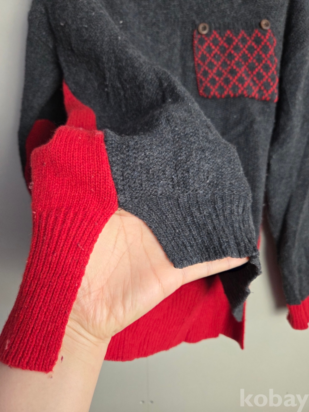 [천원옷장] A-0267 귀여움이 돋보이는 레드 아가일 포켓 니트 55