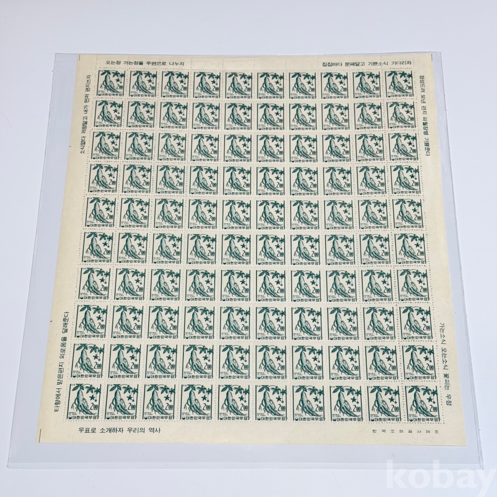 [전지] 1966년, 제2차 국산백지보통 인삼 100매 전지