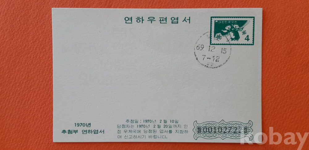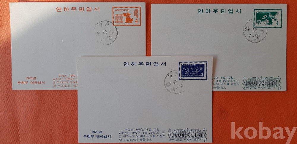 1969년 1970년용 연하 엽서(부산 소인) 3종 세트 입니다.