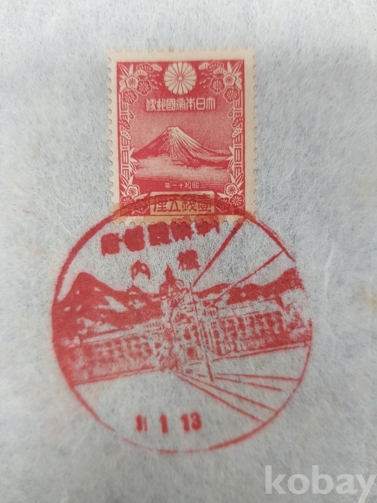 [일제강점기 관광인] 조선총독부구내/ 엽서정도 크기 대지에 우표를 첩부하고 날인