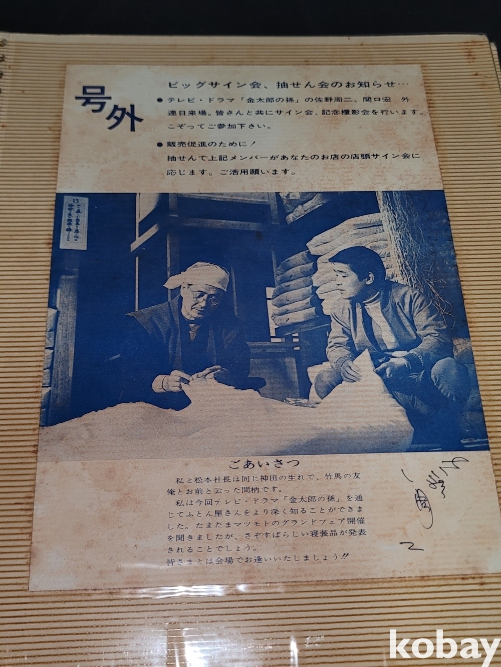 빈티지 1971년 일본 TV 방영된 이불 가게 침구점 장인과의 사인회 관련 빈티지 앨범입니다.