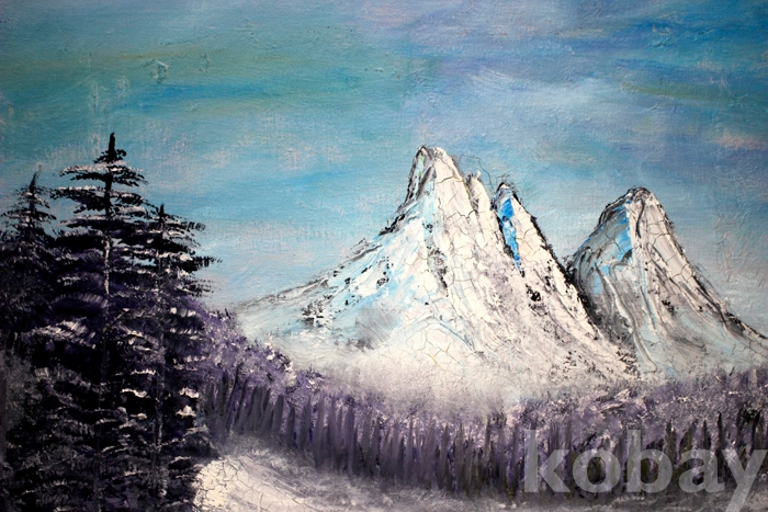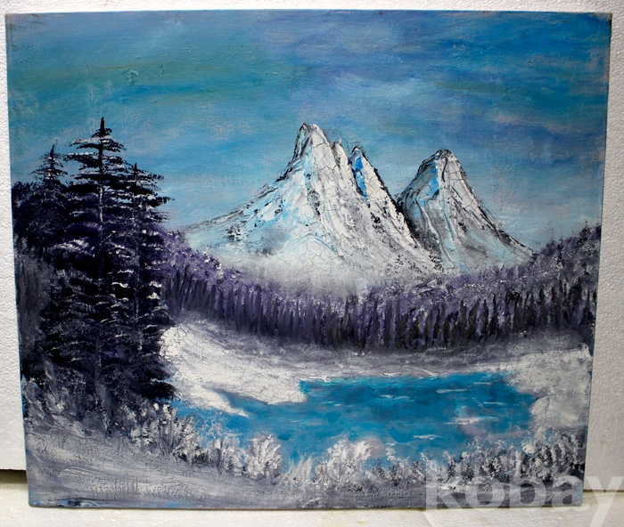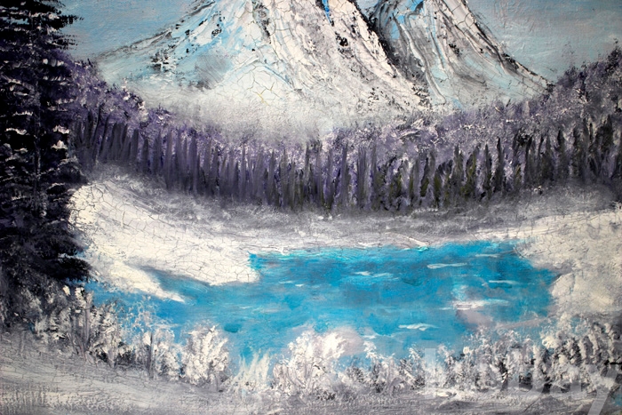 (유화) 작가미상의 설경유화작품(2) - 눈이 쌓인 호숫가의 겨울 풍경 (10F)