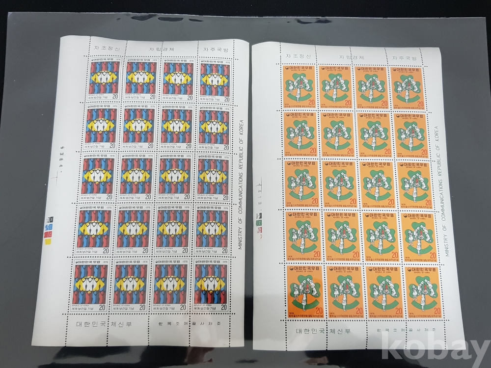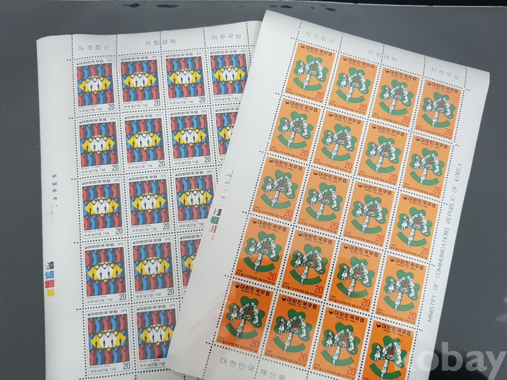 - 미사용 1976년 세계보건일, 한국걸스카우트연맹 창립 30주년 전지 2종 모음